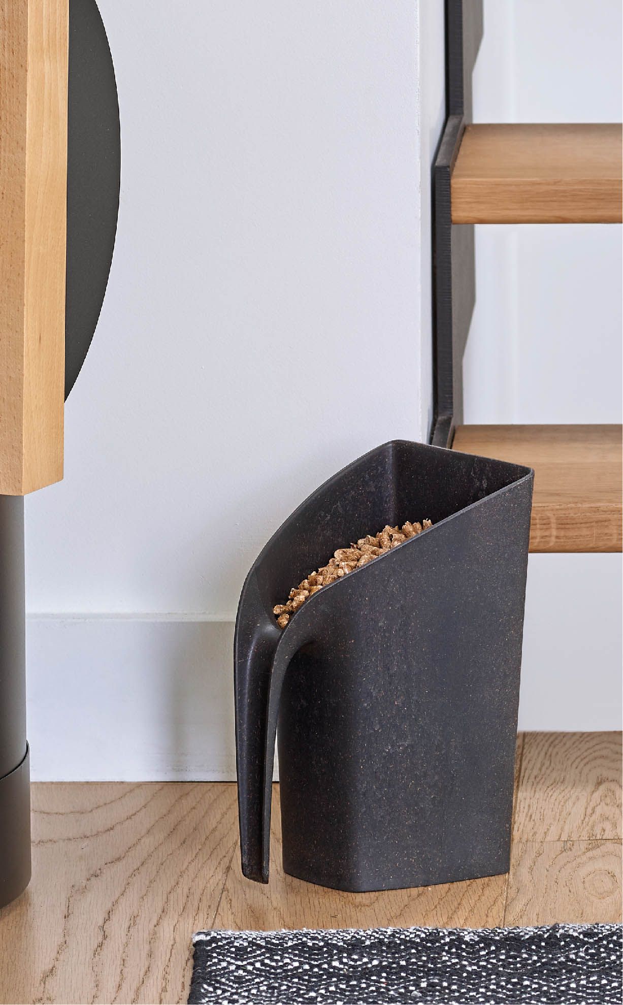 Pelle à granulés résistante 60% fibre de bambou et 40% plastique Poignée ergonomique Son fond perforé permet d’évacuer un maximum de poussière de granulés.