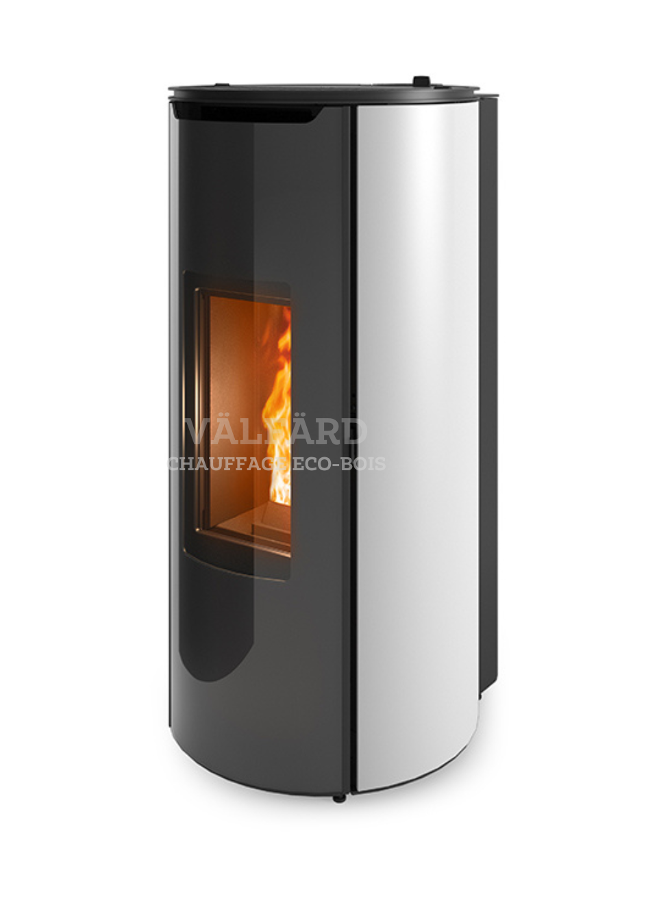 Poêle à granulés de 6 ou 8 kW rond de la gamme MCZ, compact et au design moderne.