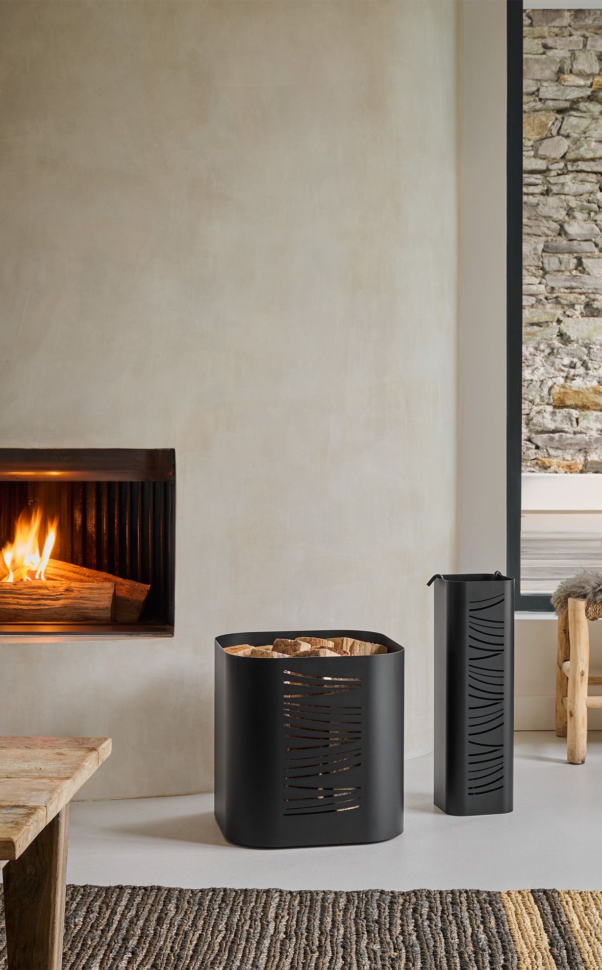 Rangement à bois aux graphismes exclusifs. Sa forme aux angles arrondis s’intègrent dans tous types d’intérieurs.